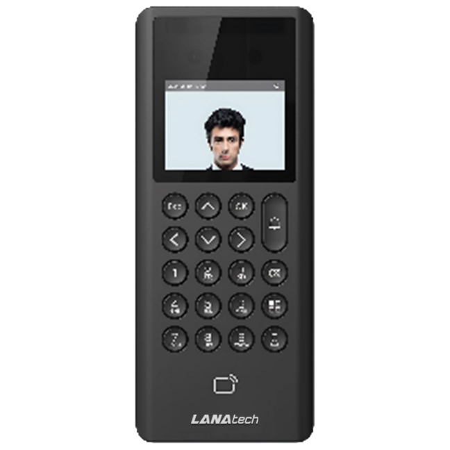Wi-Fi biometric access terminal with face (1,000) & card (3,000) cap. Supports full access.
